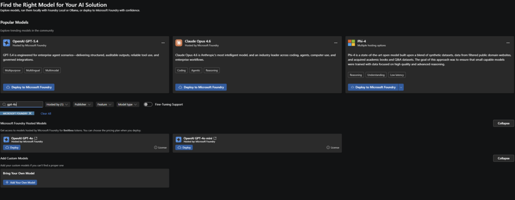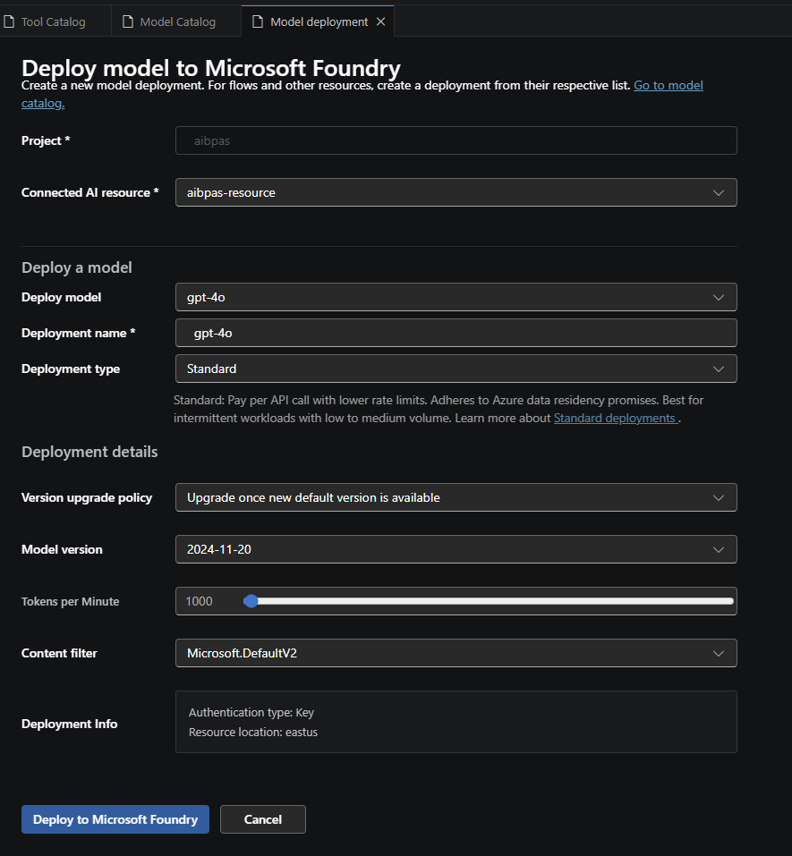 - Deploy a model to your AI Foundry (Iâll be using GPT-4o for this) by going to prompted agents