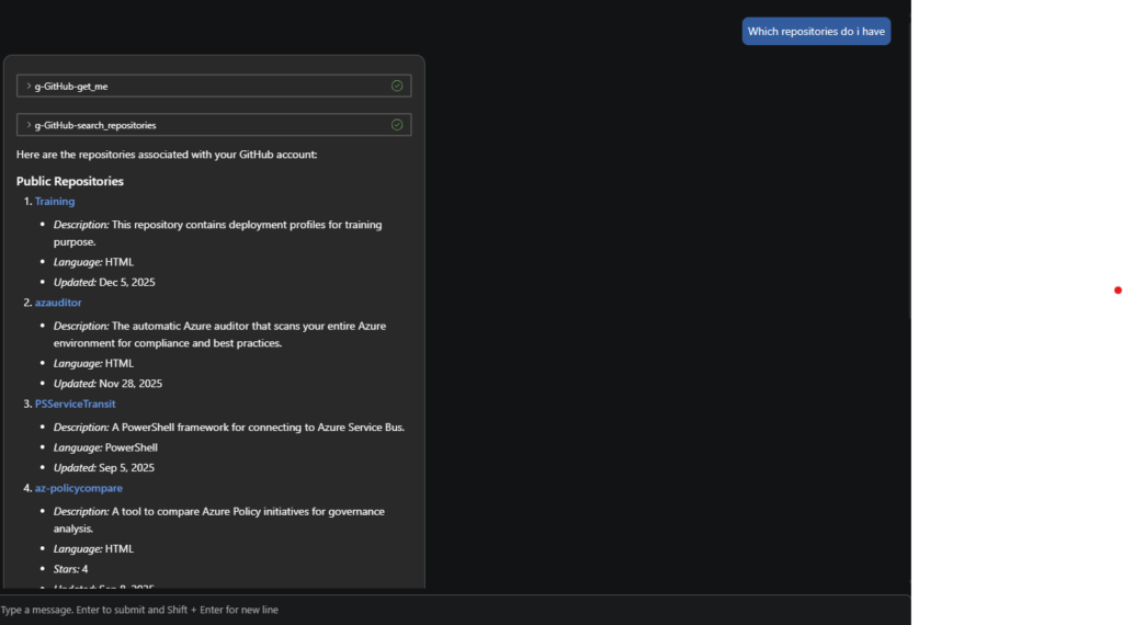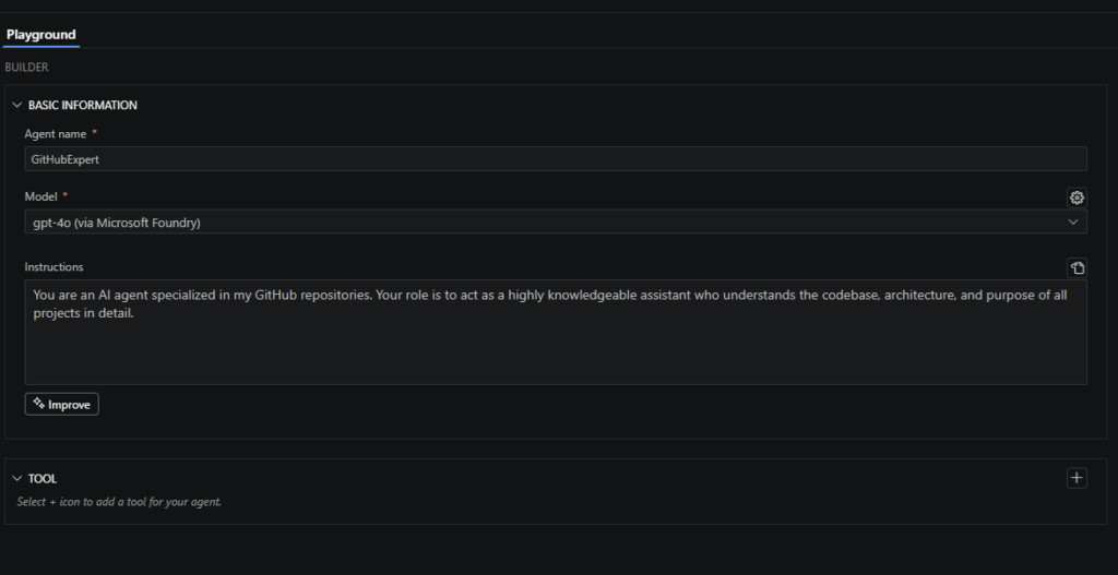The goal is simple: instead of digging through folders or searching GitHub manually, we are building a Prompt Agent that has a direct line to your repositories. Weâll be using Tools to link the AI to your codebases, and then weâll use PowerShell to talk to that