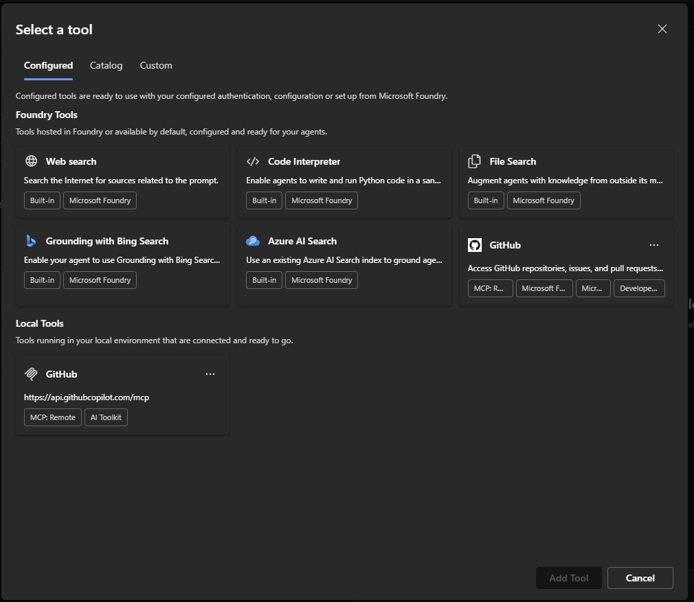 Tools: These are the “capabilities” we give the Agent. Tools allow the AI to actually do things, like fetching repository data or searching through your code, rather than just relying on what it learned during training.