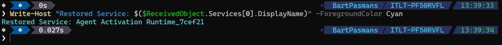 Write-Host "Restored Service: $($ReceivedObject.Services[0].DisplayName)" -ForegroundColor Cyan