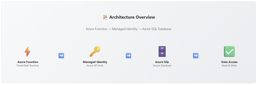 Passwords can be leaked, stolen, or accidentally committed to source control. What if I told you that you can connect to Azure SQL Database without storing a single password?In this blog, we’ll explore how to use Azure Managed Identity with PowerShell Azure Functions to securely access Azure SQL Database – no connection strings, no passwords, just pure Azure AD token-based authentication!