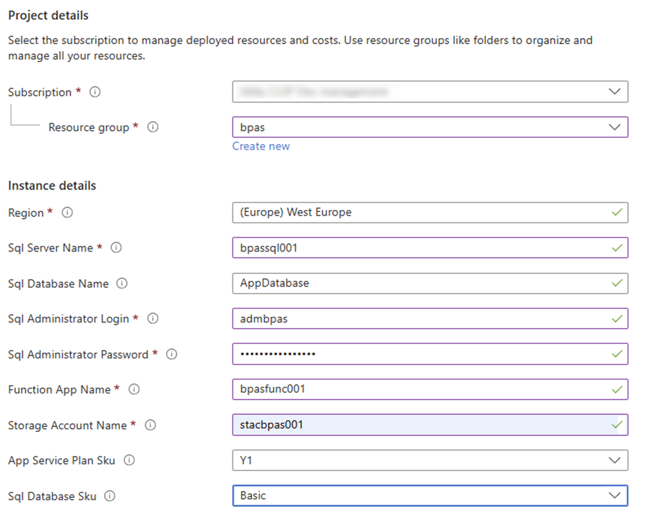πŸ“’ The SQL admin credentials are only used for initial setup and emergency access. The function will never use these credentials, it uses managed identity tokens instead!