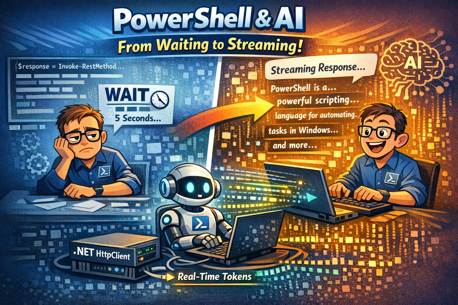 Many of you have already built your first PowerShell + AI scripts. You call the API, wait 5 seconds, and then, boom! the entire response appears all at once. It works. But let’s be honest: it feels a bit “static.”
