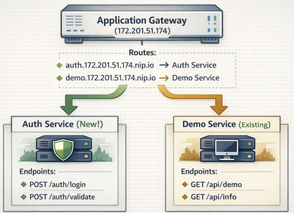 So we have the application gateway and we have the demo service available. We’ll now be working on the auth service.