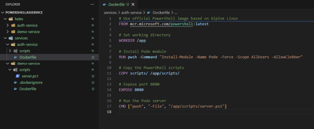You introduced a second PowerShell microservice: an auth service built with Pode. It handles logins, issues short-lived tokens, and validates requests centrally. This means every future service can rely on one place for authentication instead of rolling its own logic.