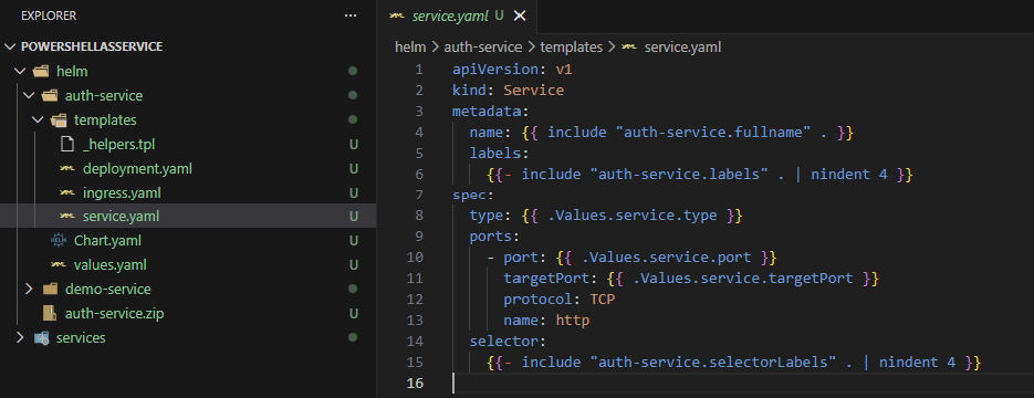 We’ll also create the helm structure (later during this blog, but let’s first focus on the authentication service).