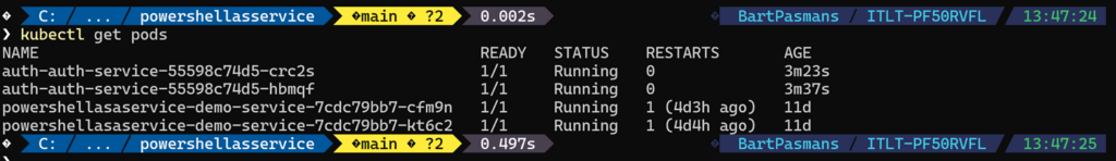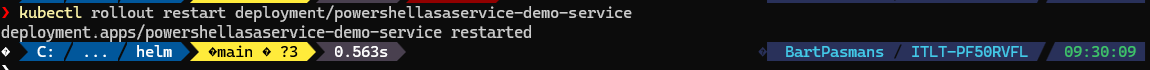 kubectl rollout restart deployment/powershellasaservice-demo-serviceYou should see the result below