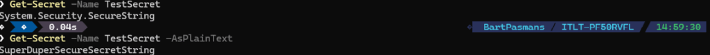 Get-Secret -Name TestSecret -AsPlainText