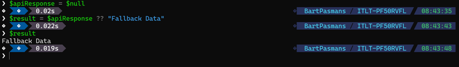 This is crucial because if your “fallback” (the right side) is a heavy function call, like “Get-ExpensiveData”, PowerShell will only run that function if the left side is null. This saves your CPU 😉