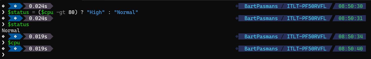 $status = ($cpu -gt 80) ? "High" : "Normal"
